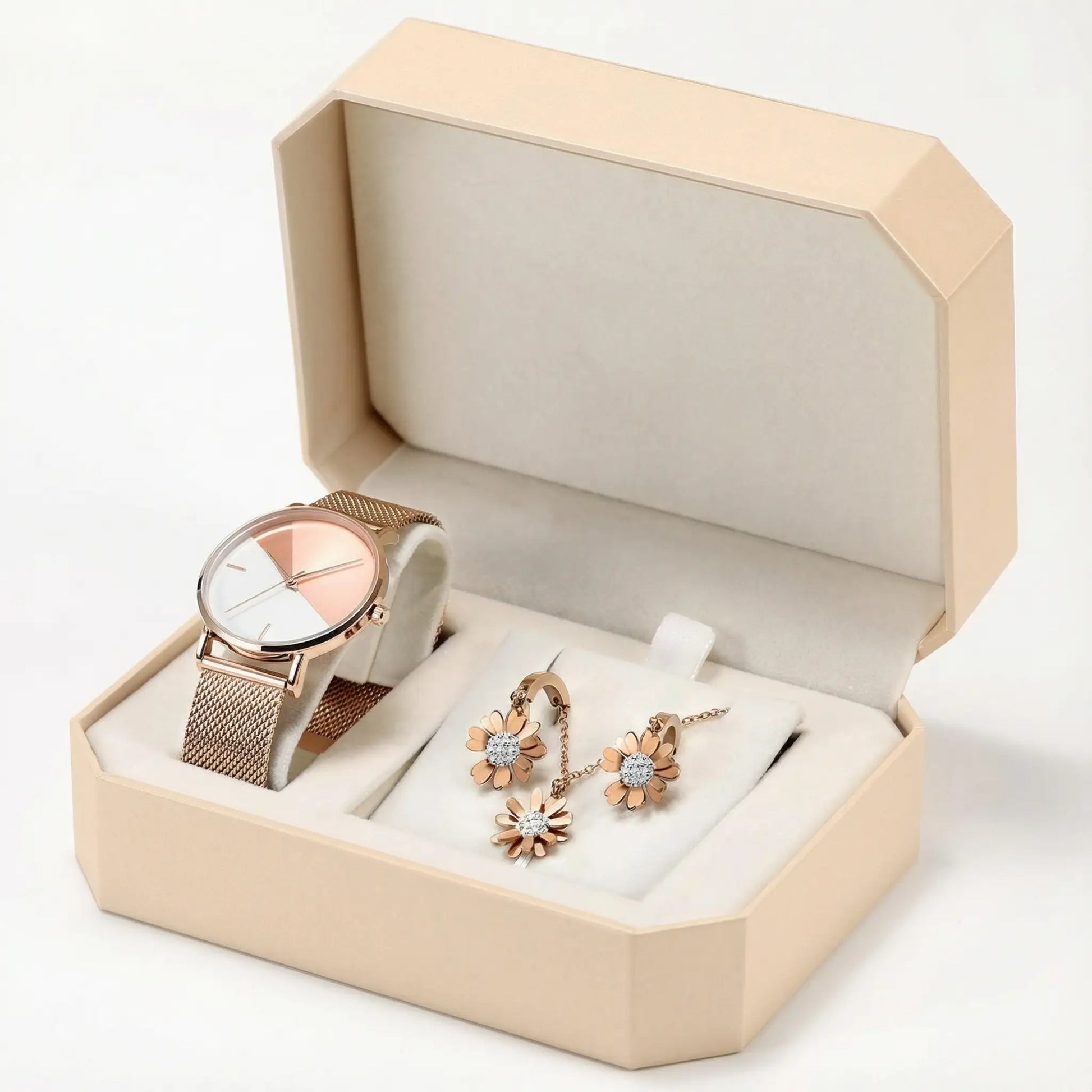 Depending on the variant, you’ll receive 2 to 5 pieces β€” including the watch and matching jewelry