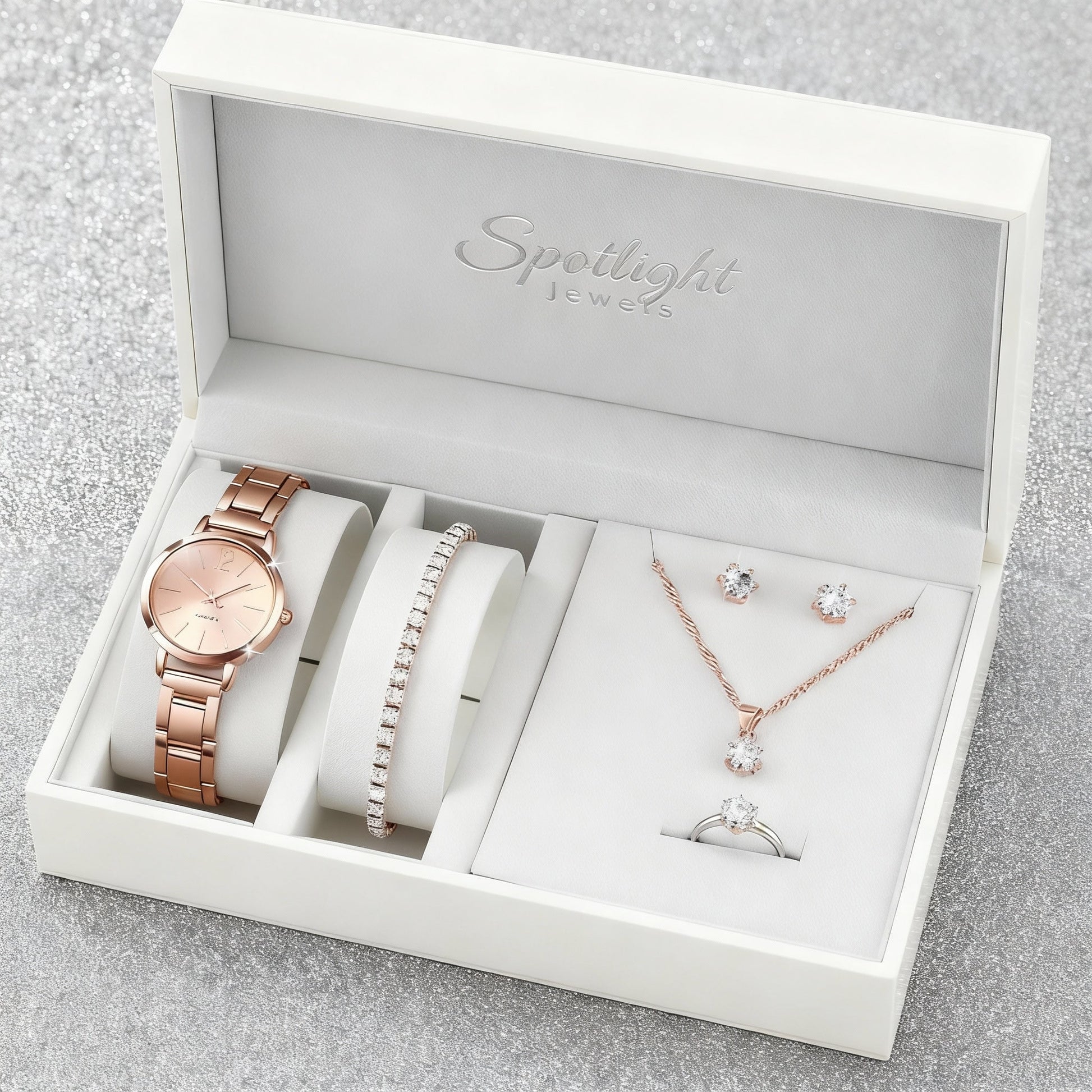 Depending on the variant, you’ll receive 2 to 5 pieces — including the watch and matching jewelry
