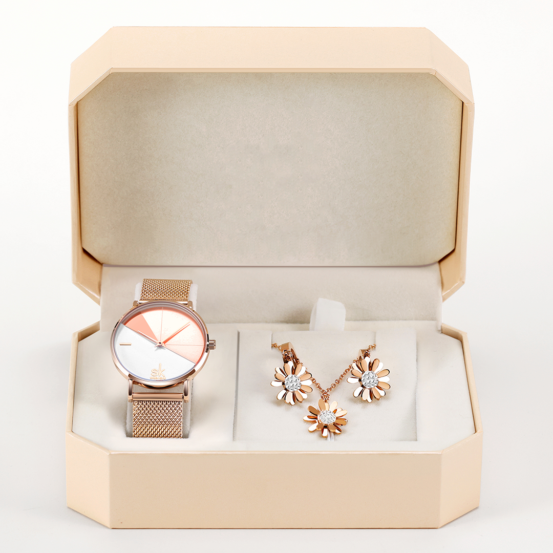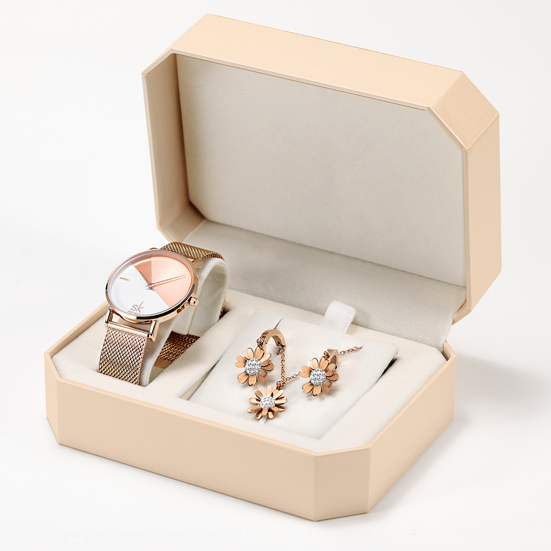 Depending on the variant, you’ll receive 2 to 5 pieces — including the watch and matching jewelry